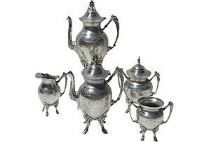 Unique American Tea & Coffee Set with figural spout & Legs with matching extra large Tray c.1885