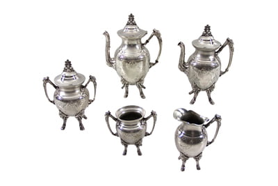 5 Piece American Tea & Coffee Set Plus Tray c.1885. SKU #: A5065.