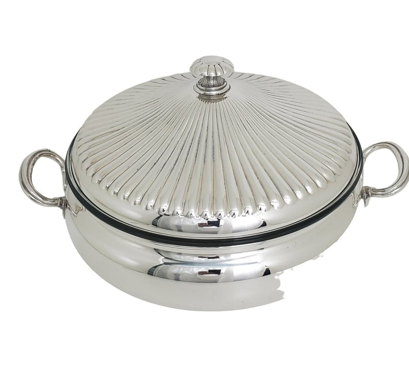 Casserole 2 Handle with Pyrex Dish Silver Plate c.1980