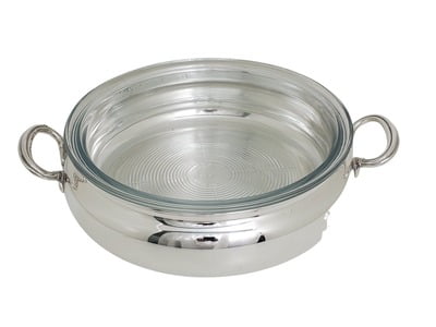 Casserole 2 Handle with Pyrex Dish Silver Plate c.1980. SKU #: A520.