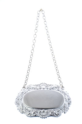 Label your favorite libation with a lustrous silver plated decanter label. Each label is hand engraved with a variety of liquors. Including a chain to go around the neck of the decanter, this collection will make serving guests their favorite cocktail easy. The labels measures 1 1/4 inches in length by 2 inches in width.