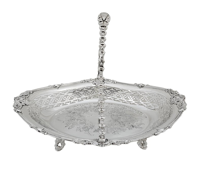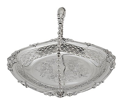 Basket Oval Engraved & Pierced On 4 Feet English Silver Plate c.1875. SKU #: ANT2629.