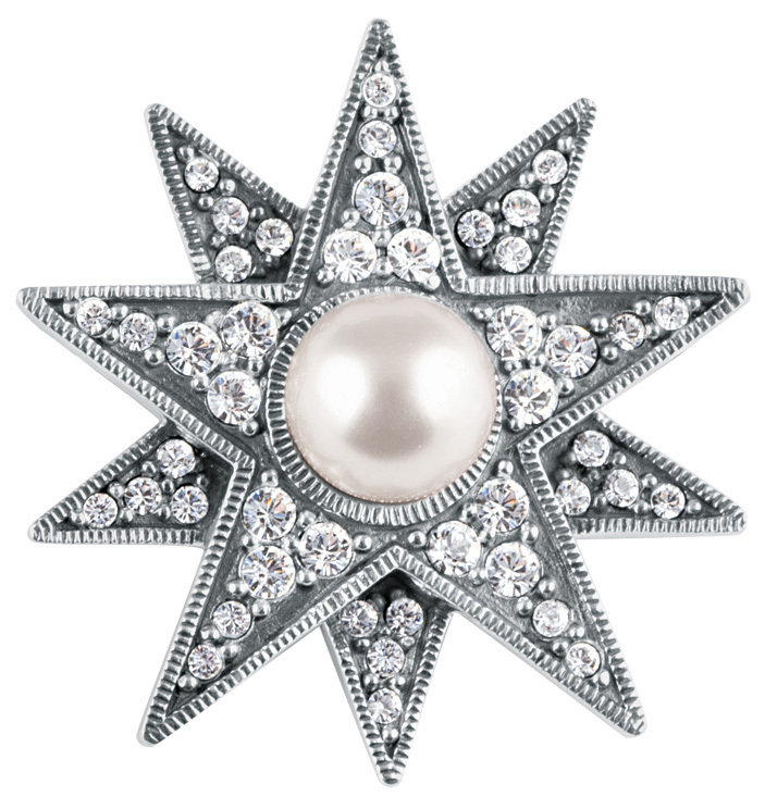 Brooch Crystal & Cultured Pearl Star English Sterling Silver 1 1/8" x 1 1/8". SKU #: B211.