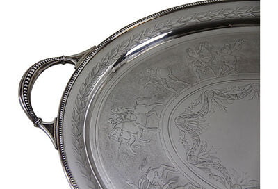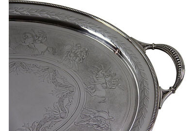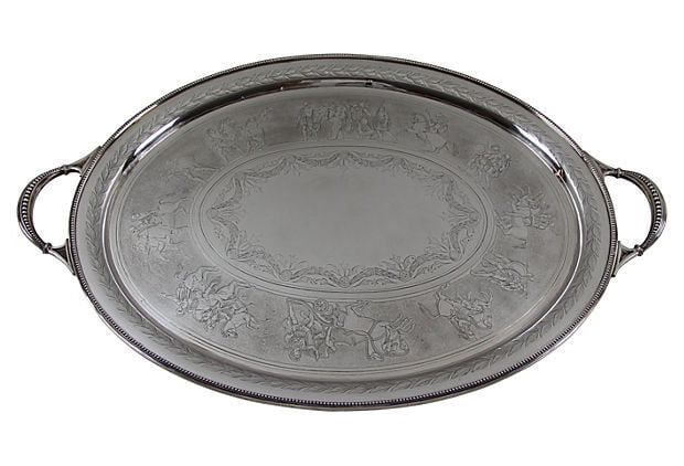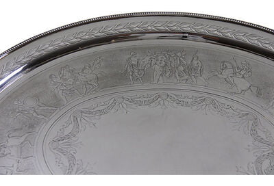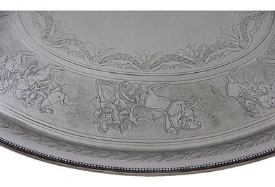English Silver Plated 29" Roman Scene Hand Engraved Tray, C.1865. SKU #: ANT1653.