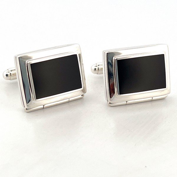Cufflinks Black Onyx Rectangular Photo Frames/Lockets Swivel that Open for Two Photos English St.... SKU #: CU466.