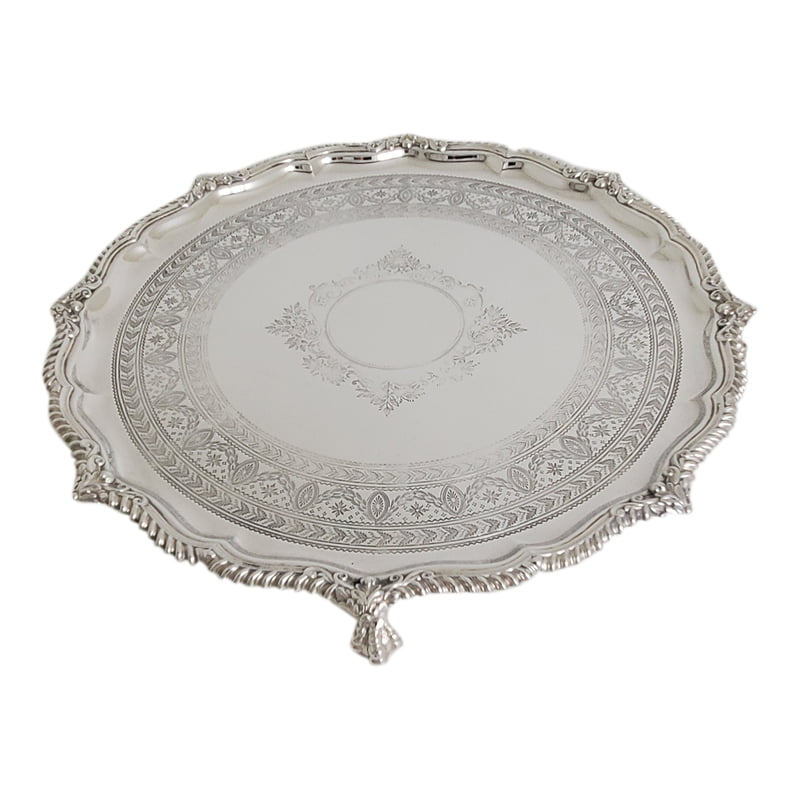 Salver 10.5" Round Engraved English Silver Plate c.1880