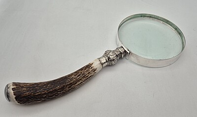 Magnifier with Horn Handle Enhance your reading experience with our elegant magnifier. Featuring a 3.5" lens, this magnifier is perfect for detailed work or leisurely reading. The handle, crafted from naturally shed horn, measures 8.75" in length and provides a comfortable grip. At the end of the handle, a disc offers a space for engraving initials, making it a personalized and thoughtful gift. This magnifier combines functionality with timeless style, making it a beautiful addition to any desk or study.