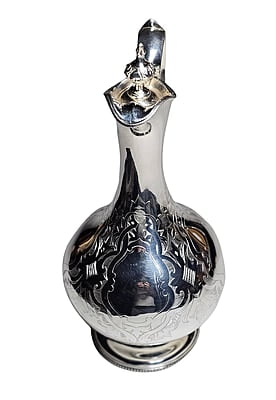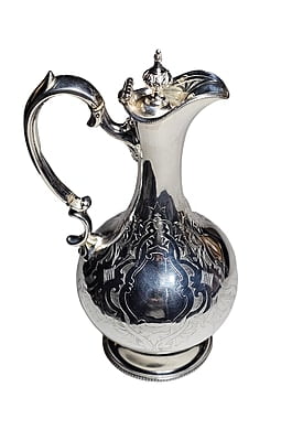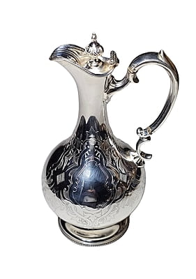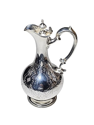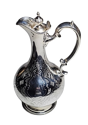 Wine Jug 11"h Engraved English Silver Plate c. 1870