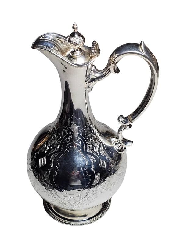 Wine Jug 11"h Engraved English Silver Plate c. 1870. SKU #: ANT1997.