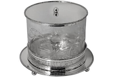 English Silver Plate/Etched Glass Biscuit Box c.1890. SKU #: ANT3006.