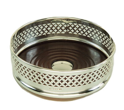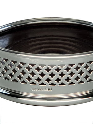 | Protect your table linens from wine spills while adding traditional style to the scene with this pierced silver-plate coaster. Fine wine deserves a fine bottle coaster. This exquisitely crafted sterling silver bottle coaster is manufactured to the highest standards from 925 Sterling silver. Perfect for any special dining occasion or treasured gift. Designed and manufactured in England. |