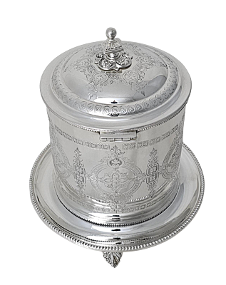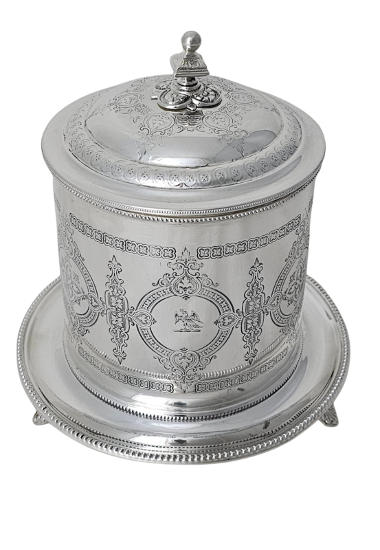 Biscuit Box Engraved English Silver Plate c.1870.SKU:ANT4198
