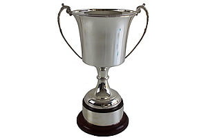 2 Handle Silver Plated Presentation Cup on plinth. Made in England, c.1900.
