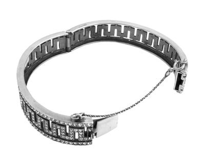 Bangle Crystal Greek Key Design with Safety Chain English Sterling Silver 2.5" x .5"