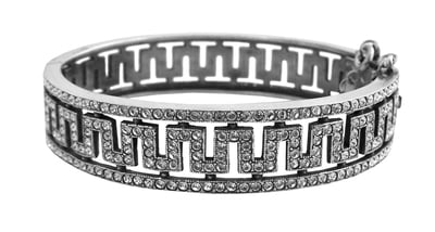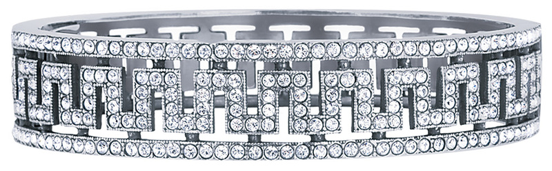 Bangle Crystal Greek Key Design with Safety Chain English Sterling Silver 2.5" x .5". SKU #: BT205.