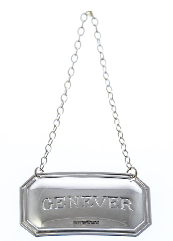 GENEVER Cut Corner Hallmarked Silver Decanter Label..