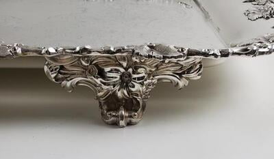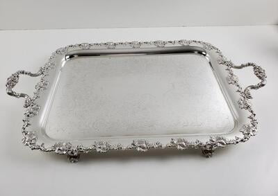 American Grape Border Tray With elaborate Feet 30" x 18.5" Silver Plate c.1900