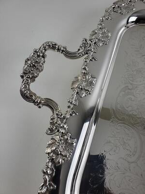 Grape Border 30" American Silver Plated Tray. SKU #: ANT8864.