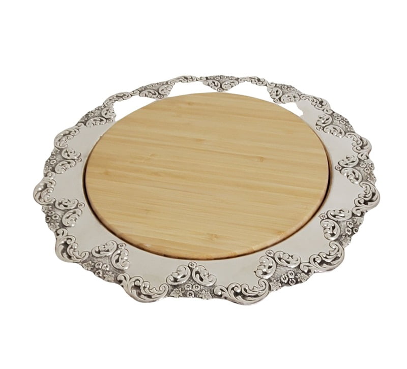 Bread Board Round English Silver Plate c.1875 (New Wood)