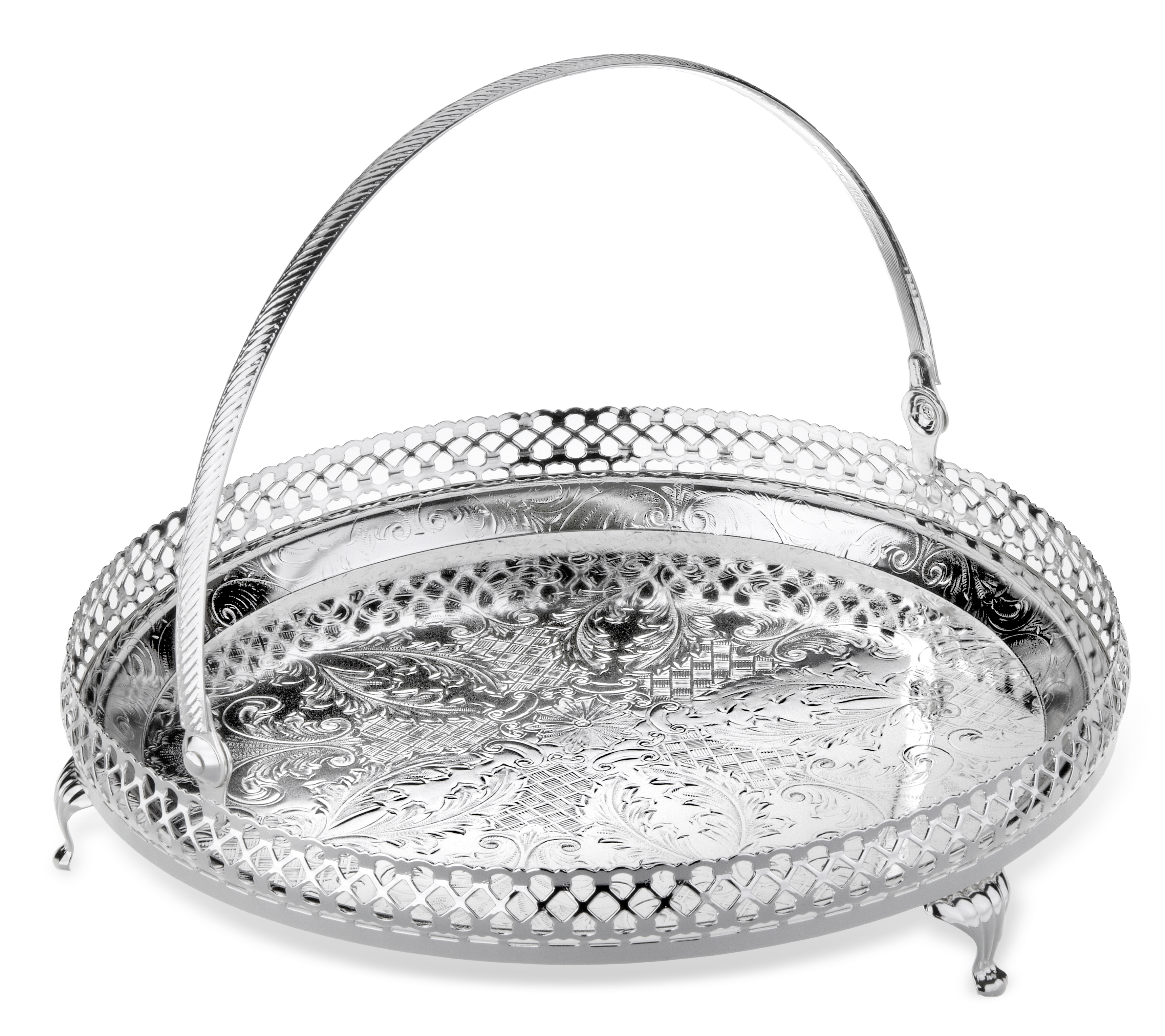 Gallery Tray/Legs/Handle 9"dia x 7"h English Silver Plate (Tarnish Resistant) |