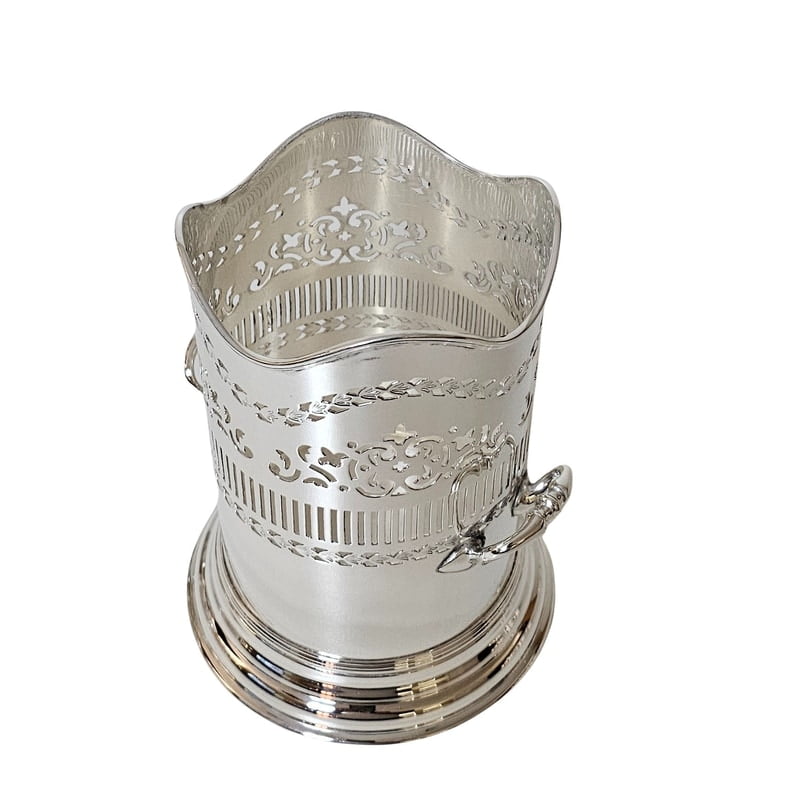 Description: This superb silver-plated syphon stand features intricate hand-pierced patterns, making it a delightful addition to your collection.