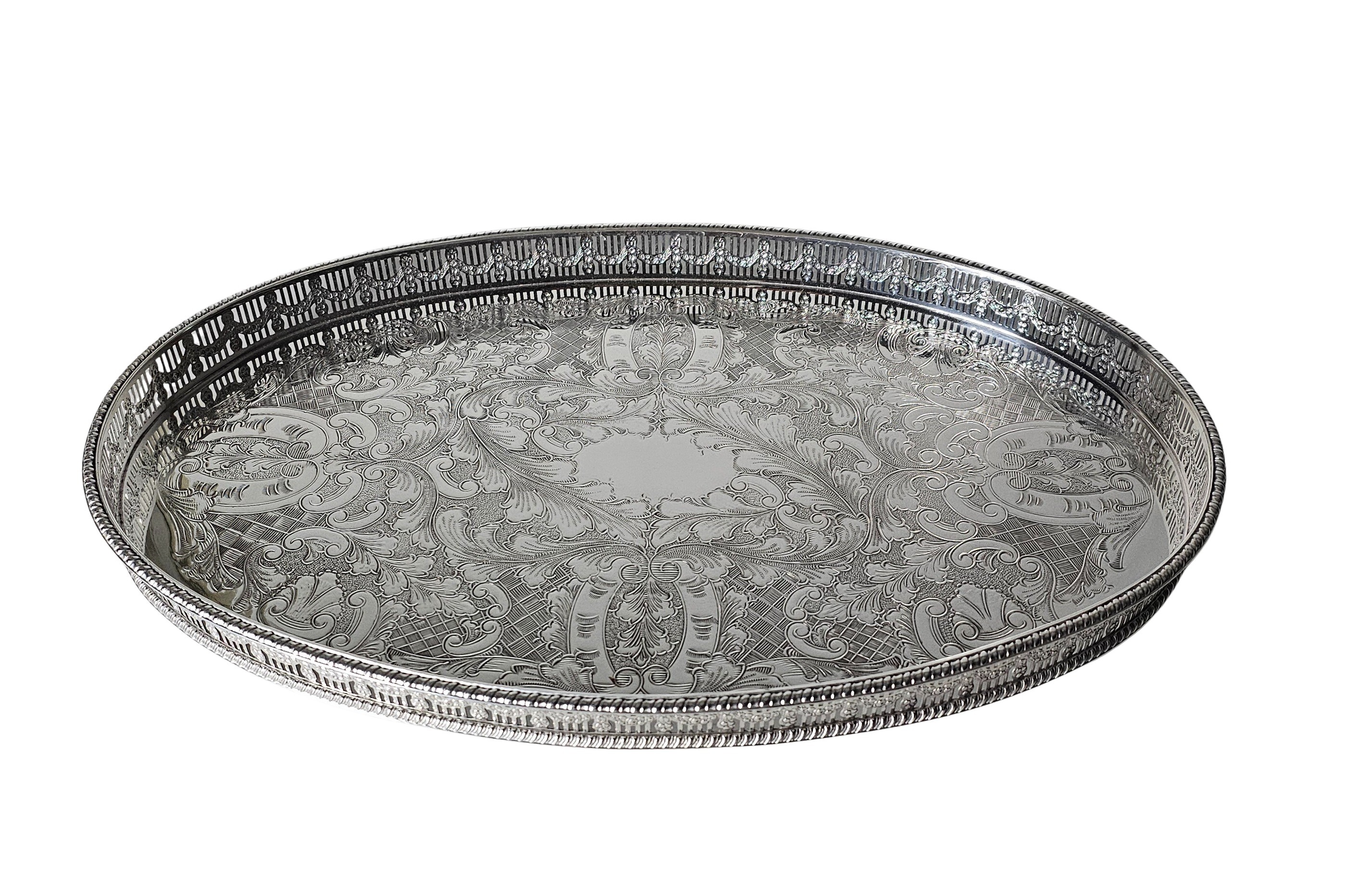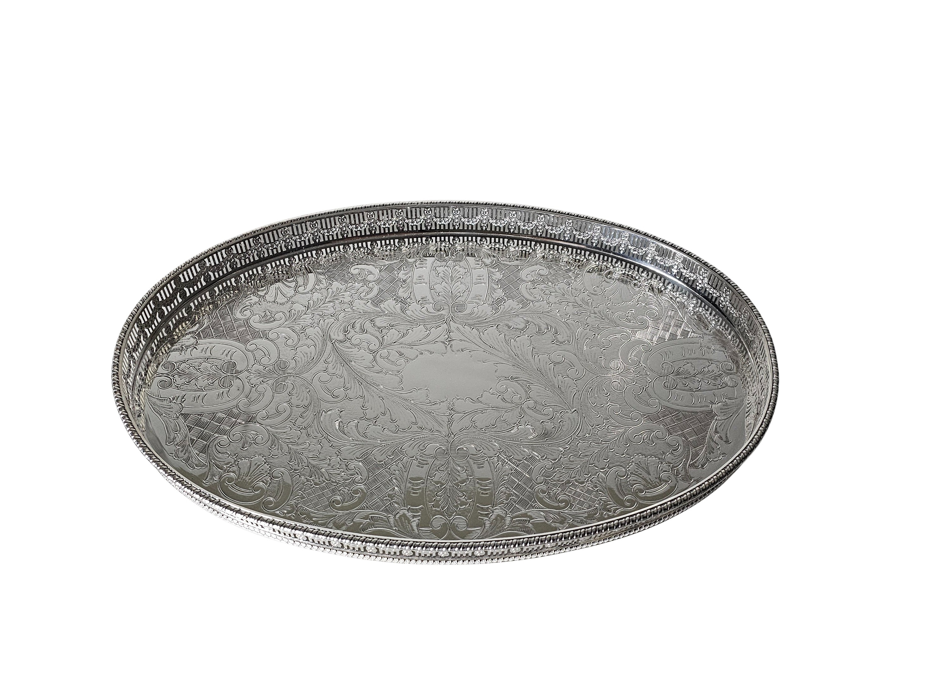 Gallery Tray 15" Engraved Base English Silver Plate c.1900.SKU:ANT4294