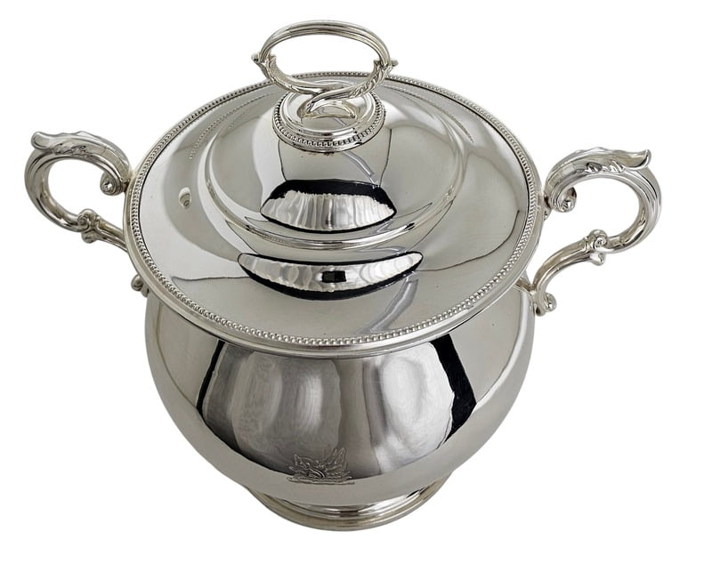 Crested Round Bead Edge Soup Tureen English Silver Plate c.1865. SKU #: A559.