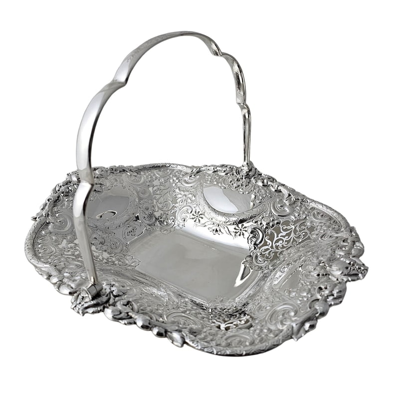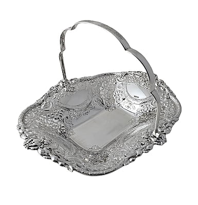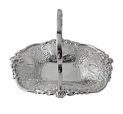 Superb Heavy Elaborate Basket, Rectangular English Silver Plate c.1875