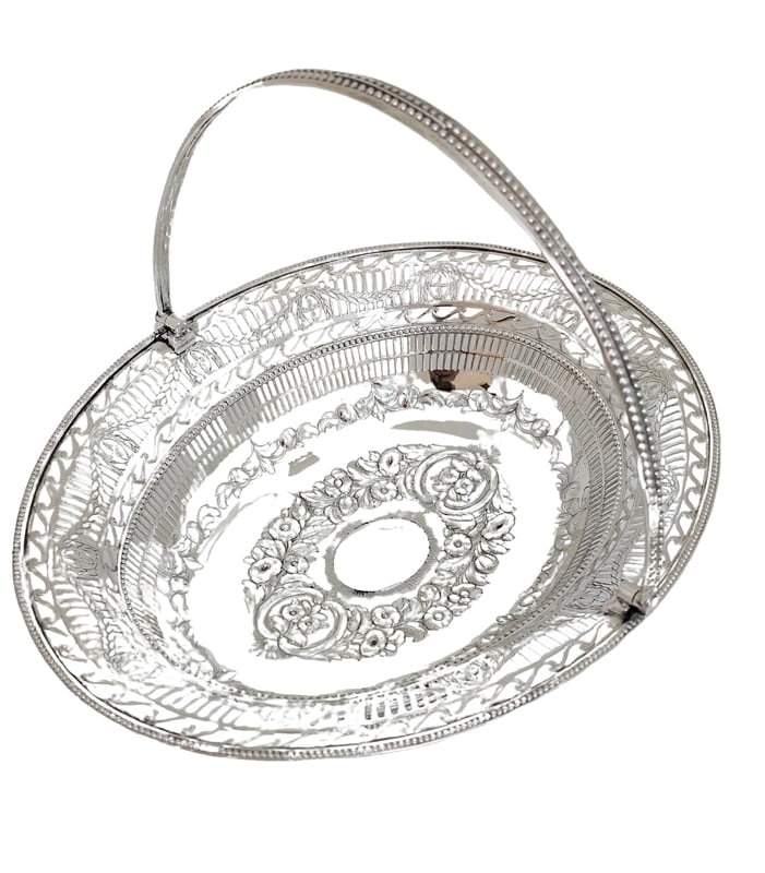 Superb Basket Oval Embossed & Pierced English Silver Plate c.1860.