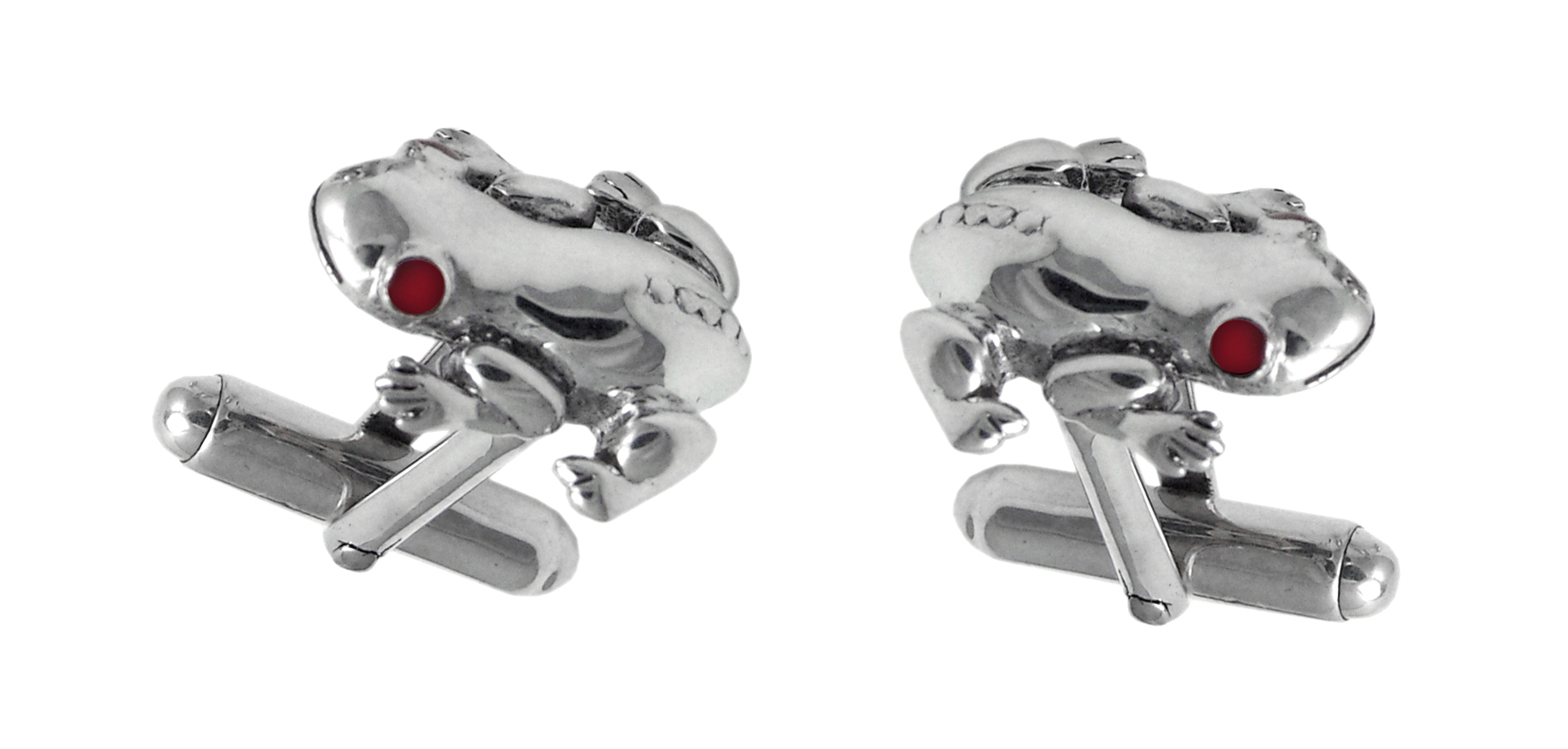 Sterling Silver Frog Cufflinks with Garnet Set Eyes
