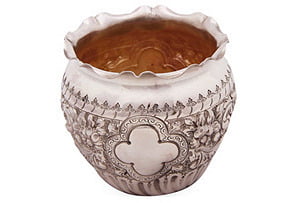 Fern / Flower Pot Embossed 4.5"w x 4"h Silver Plate. SKU #: C1672.