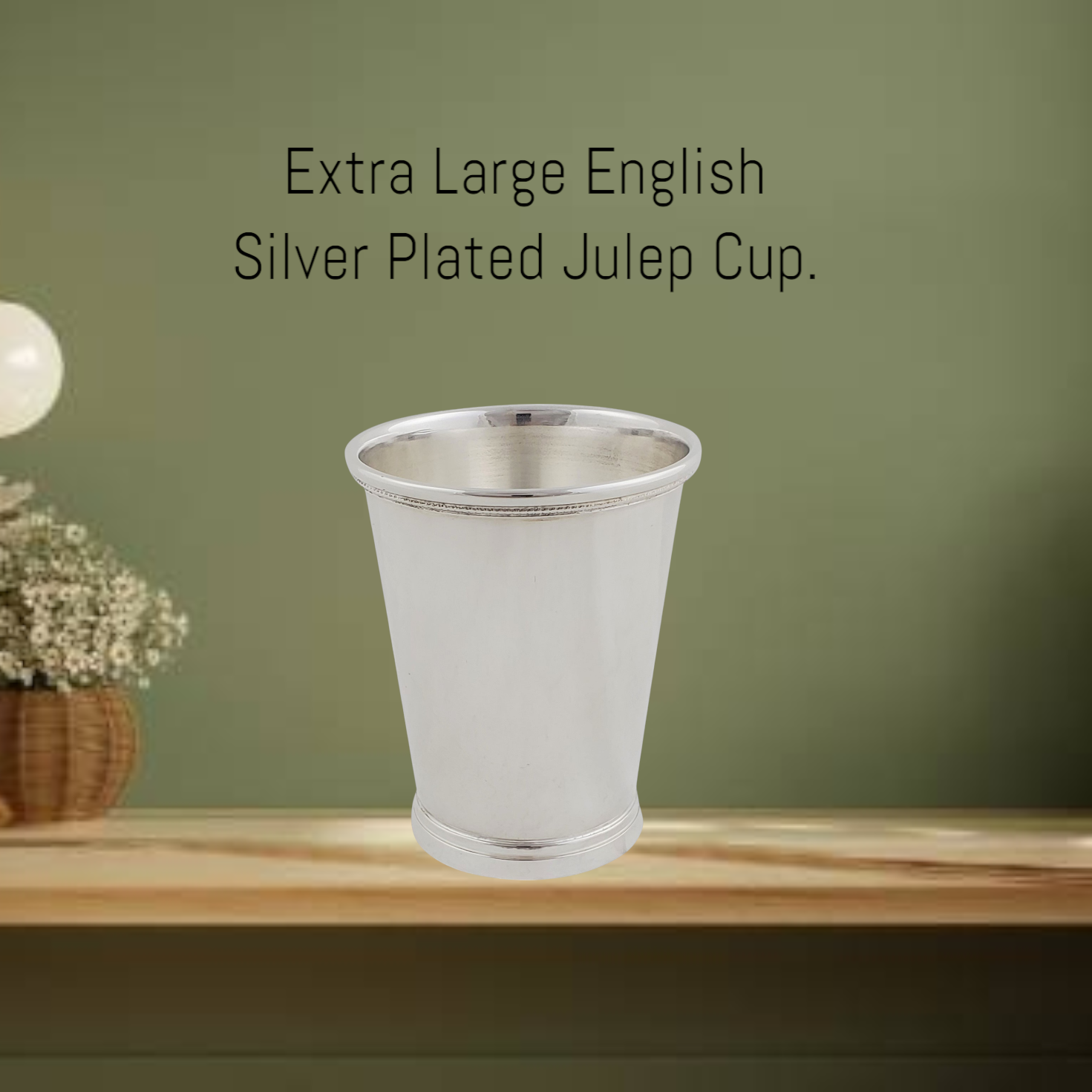 Extra Large Bead Edge English Silver Plated Mint Julep 4.5"h x 3.75"w