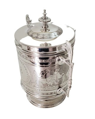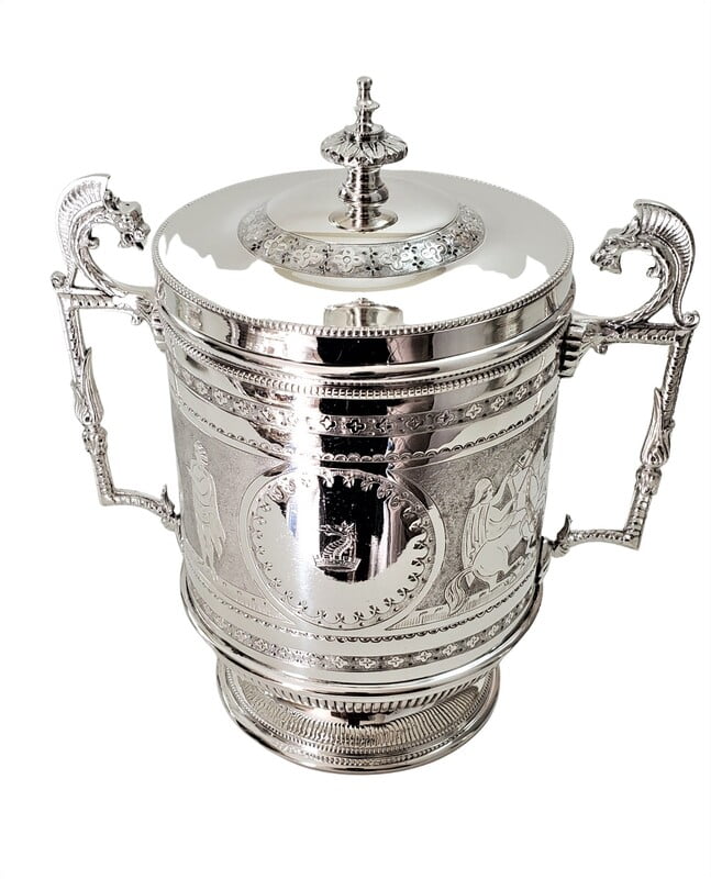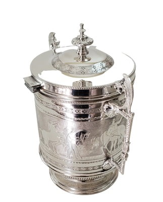Biscuit Box Crested with Superb Roman scenes English Silver Plate c.1875. SKU #: ANT2121.