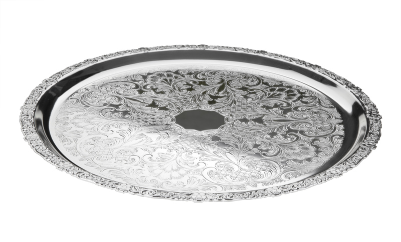 Queen Anne Large Round Flat Tray English Silver Plate (Tarnish Resistant). SKU #: 0/6192.