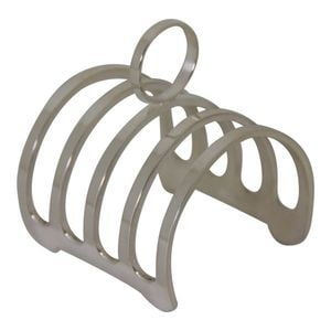 Equestrian Elegance Silver-Plated Toast Rack Discover the charm of English breakfasts with our robust silver-plated toast rack. Crafted in a unique horseshoe design, this 5-bar rack measures 3.5" in length, 3.25" in width, and stands 4" high. It’s not just a functional piece for your morning toast; it’s a conversation starter that adds a touch of equestrian grace to your table setting.
