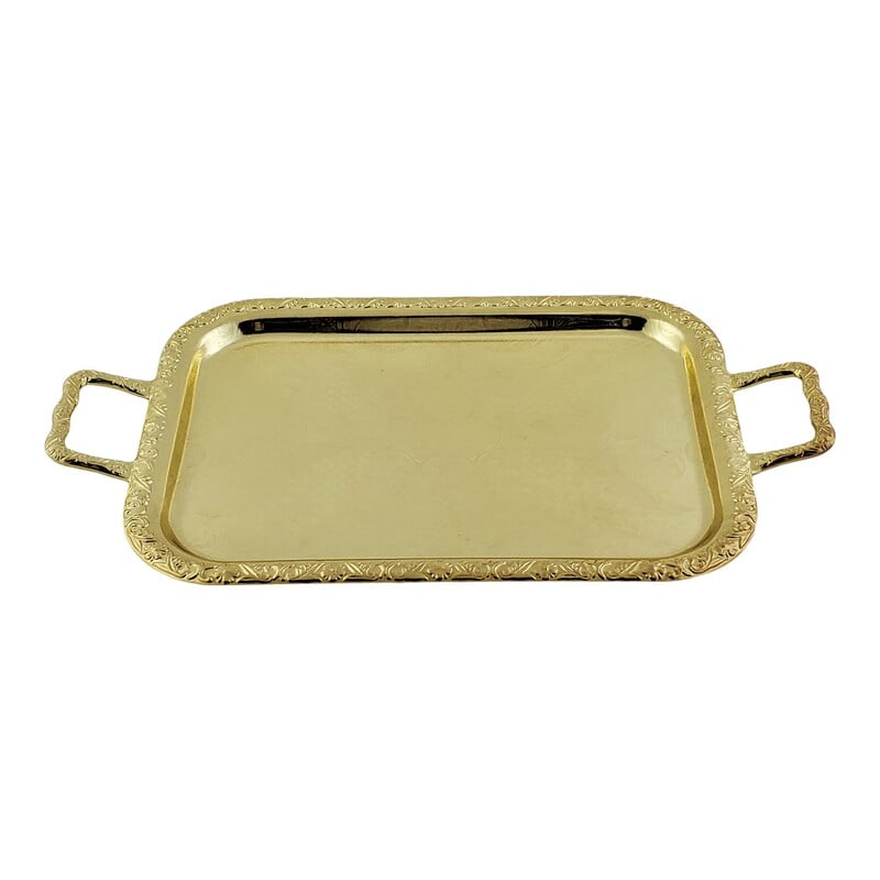 Silver Plated Small Floral Edged Oblong Tray with Handles Dimensions: 17 1/4" x 9 5/8" (Gold Finish)
