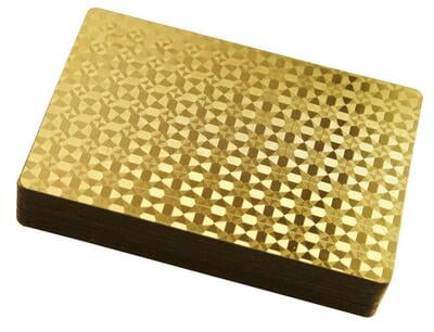 Single Deck of 23 count Gold Plated Playing Cards 3.5" x 2.25" x .75". SKU #: GT2110.