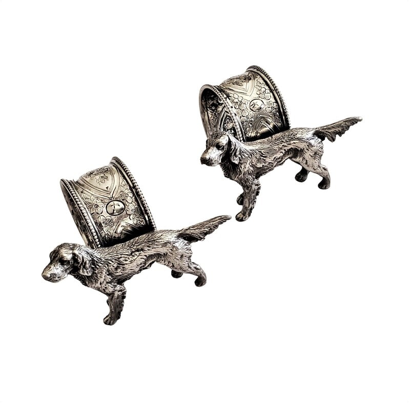 PAIR Figural Napkin Rings English Silver Plate c.1895 STANDING IRISH SETTERS (1 PAIR ONLY). SKU #: ANT2472.