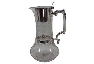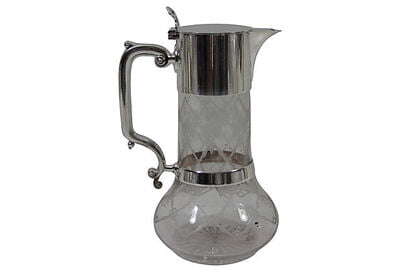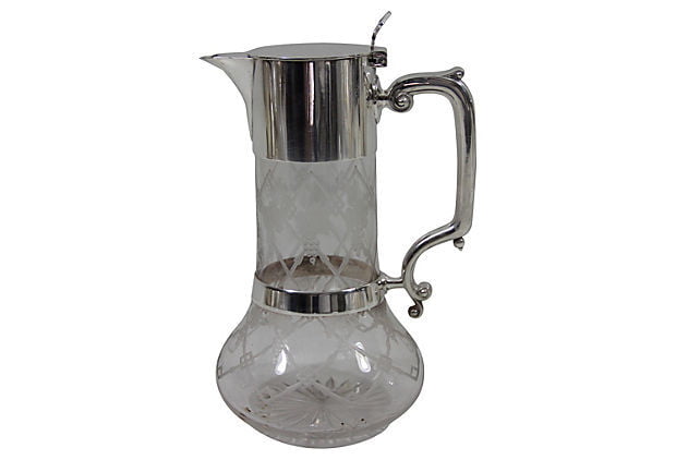 English silver-plate and glass claret jug with cutwork design on glass body, circa 1865.