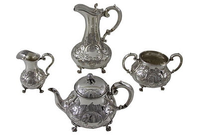 English Tea & Coffee Set, 4 Pcs c.1850. SKU #: ANT1183.