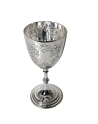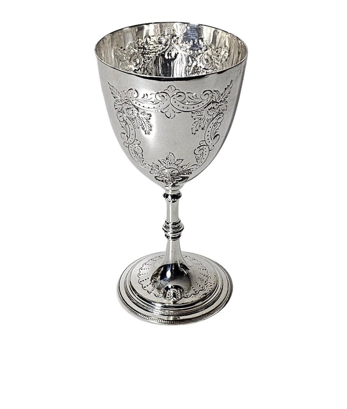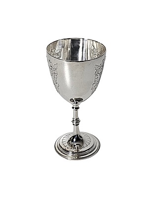 Embossed Goblet 6.5"h x 3.25"w English Silver Plate c.1875.SKU:ANT4426