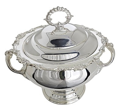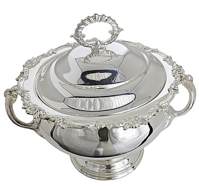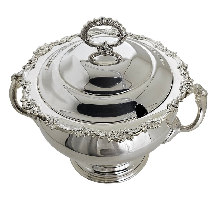 Soup Tureen elaborate Border & Handles english silver Plate c.1890. SKU #: ANT489.