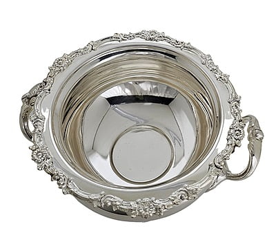 Soup Tureen elaborate Border & Handles english silver Plate c.1890