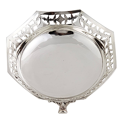 Octagonal Pierced Dish English Silver Plate c.1900. SKU #: A197.