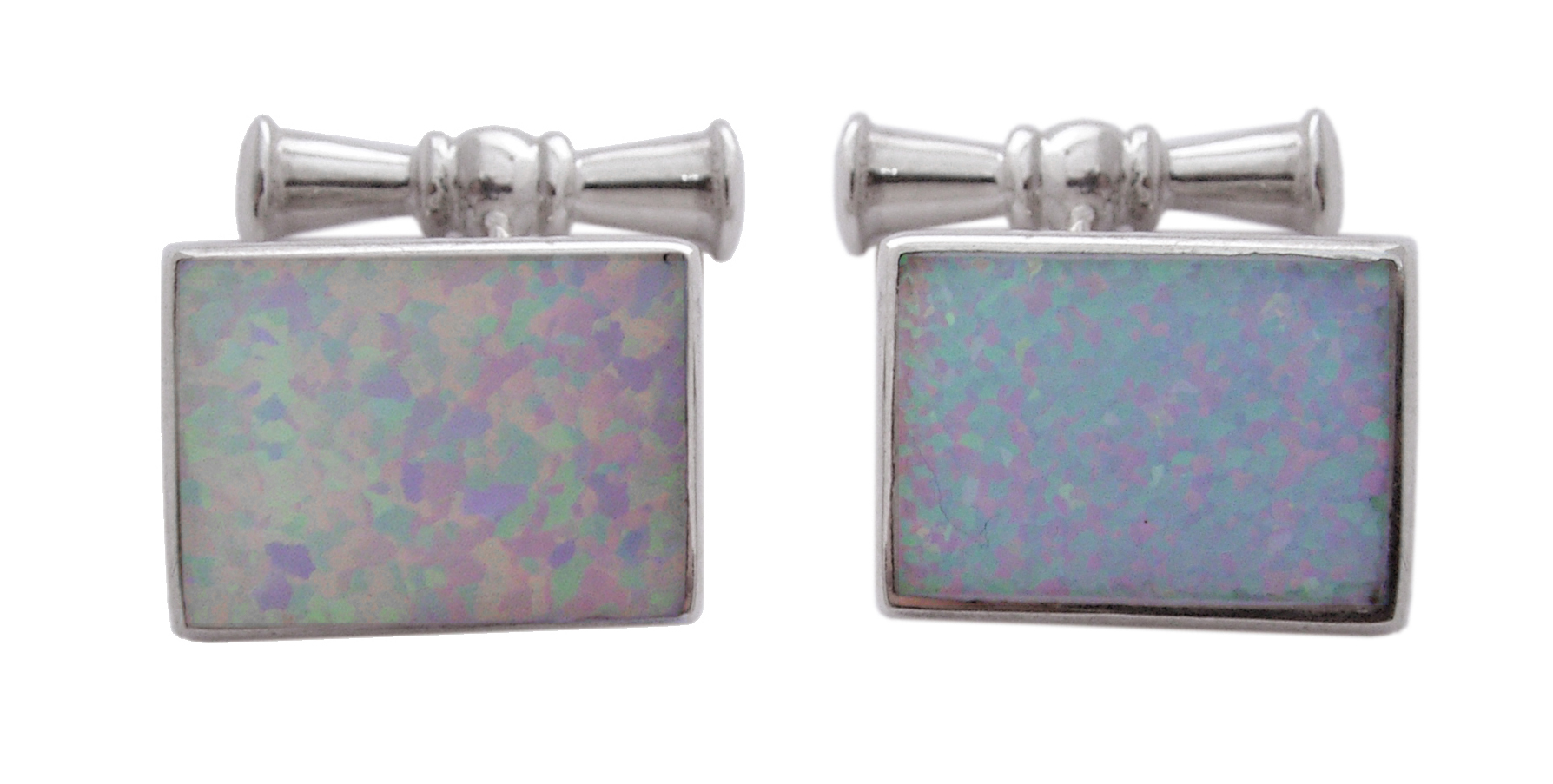 SILVER CUFFLINKS Crushed Opal Rectangular Shape Sterling Silver Chain Back. SKU #: CU517.