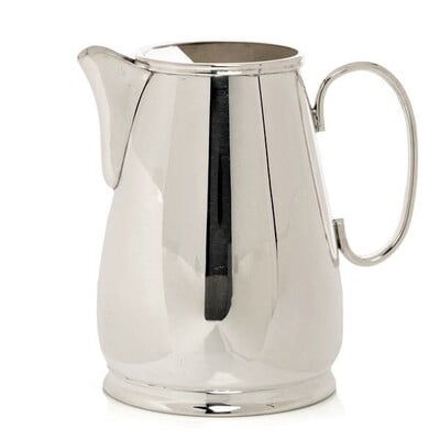 Crafted with high-quality English silver plate, this 8-inch hotel silver water pitcher exudes sophistication and durability. With its polished finish, curved spout, and sturdy handle, it delivers effortless pouring while adding a touch of grandeur to any dining setting.