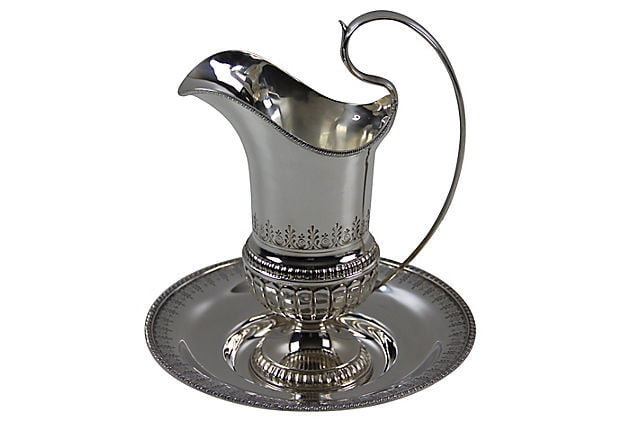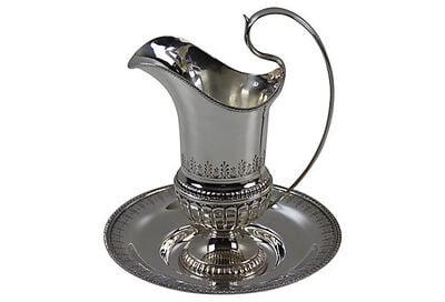 Water Pitcher & Base Silver Plate C.1980. SKU #: ANT1700.
