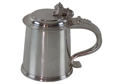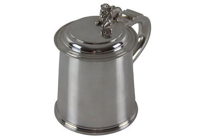 Silver-plate tankard with lion finial. Made in England, circa 1890.