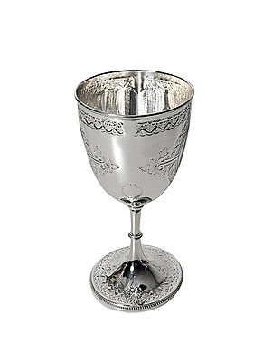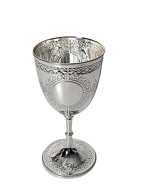 Embossed Goblet 8"h x 4"w English Silver Plate c.1875.
