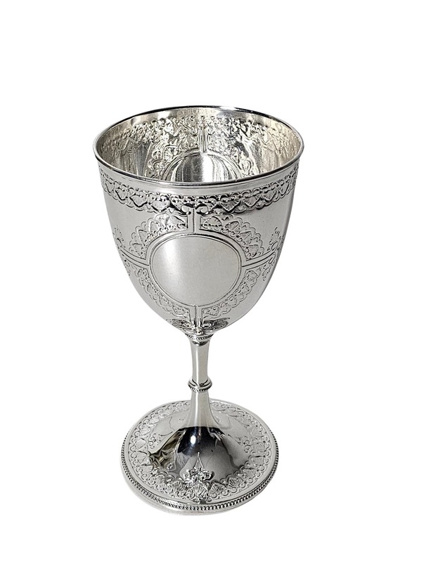 Embossed Goblet 8"h x 4"w English Silver Plate c.1875.SKU:ANT4424